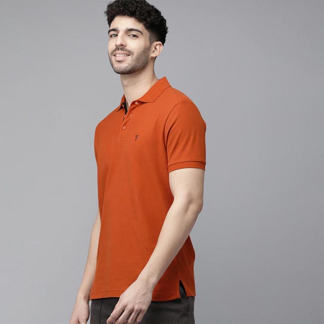 Orange solid Lounge T-shirt, has a polo collar, and short sleeves.