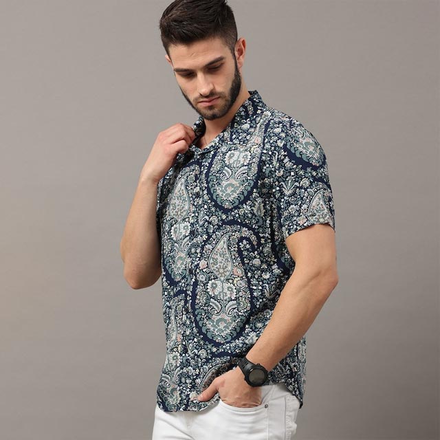 Specifications of Men Navy Blue Slim Fit Floral Printed Casual Shirt