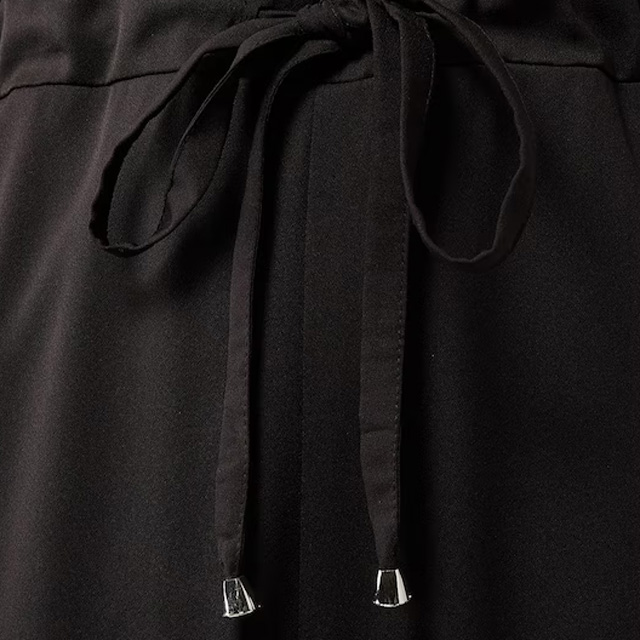 Black solid basic jumpsuit, has a V-neck, sleeveless