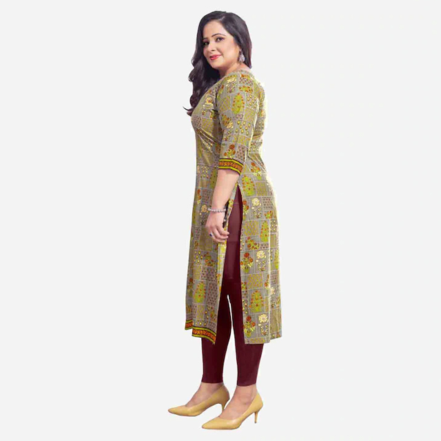 Specifications of Plus Size Women Grey & Green Printed Cotton Straight Kurta