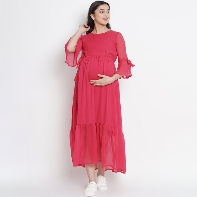 Specifications of Women Fuchsia Pink Solid Maternity Fit and Flare Dress