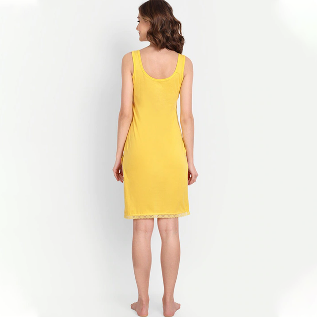 Solid knee length non padded Heart shaped neck camisole has shoulder straps, High side slits and sleeveless.
