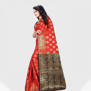 Teal & Gold-Toned Ethnic Motifs Zari Silk Blend Banarasi Sarees