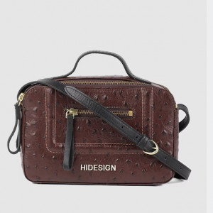 Brown Geometric EE ASPEN Embossed Leather Satchel