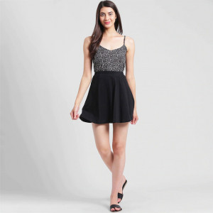 Women Black Solid Pure Cotton Mini Flared Skirts