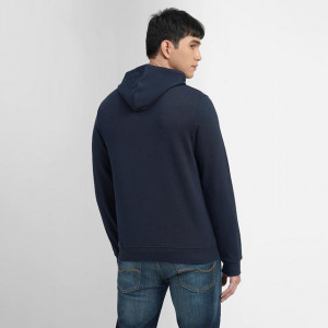 Men Blue Brand Logo Printed Hooded Sweatshirt